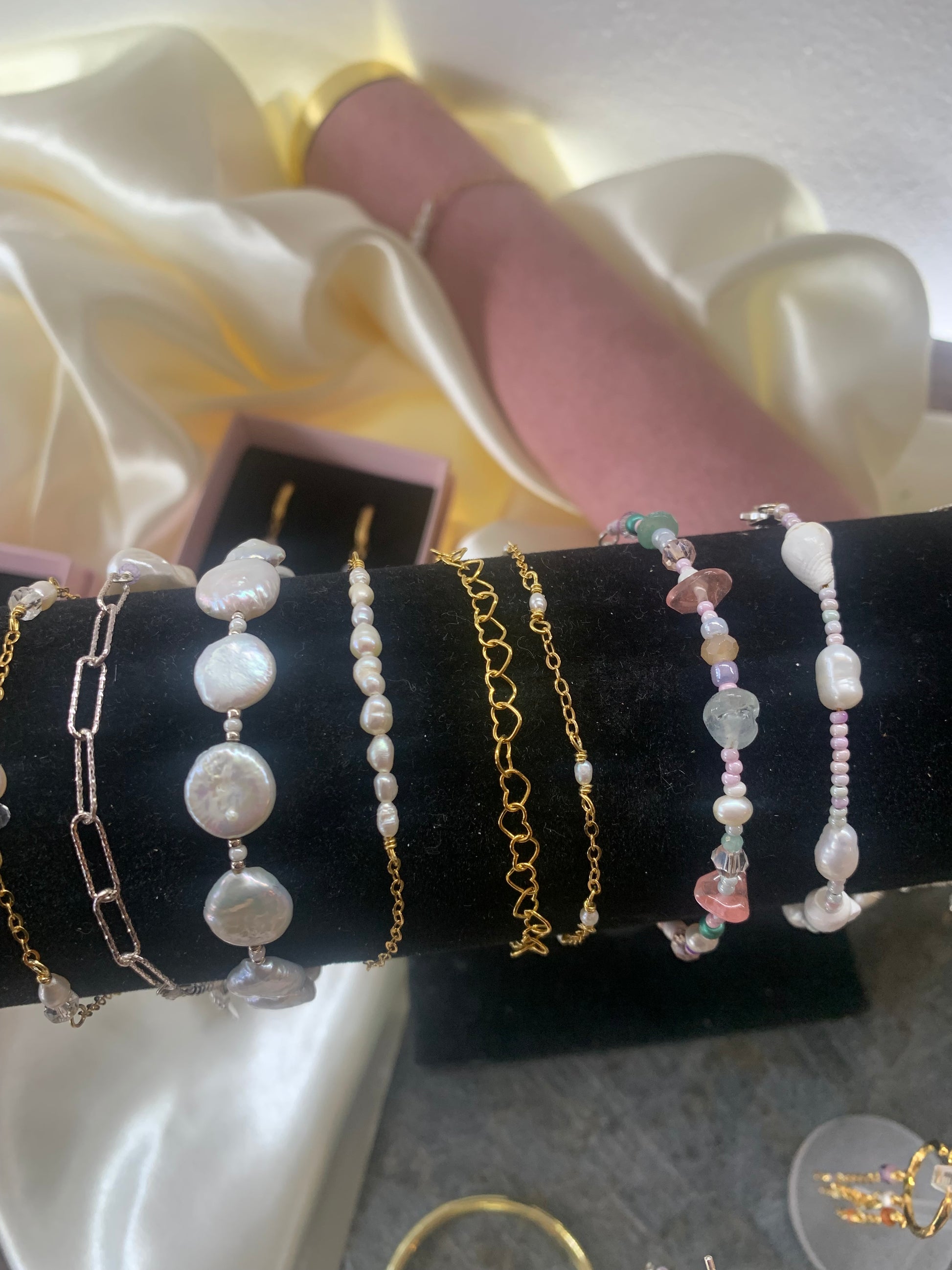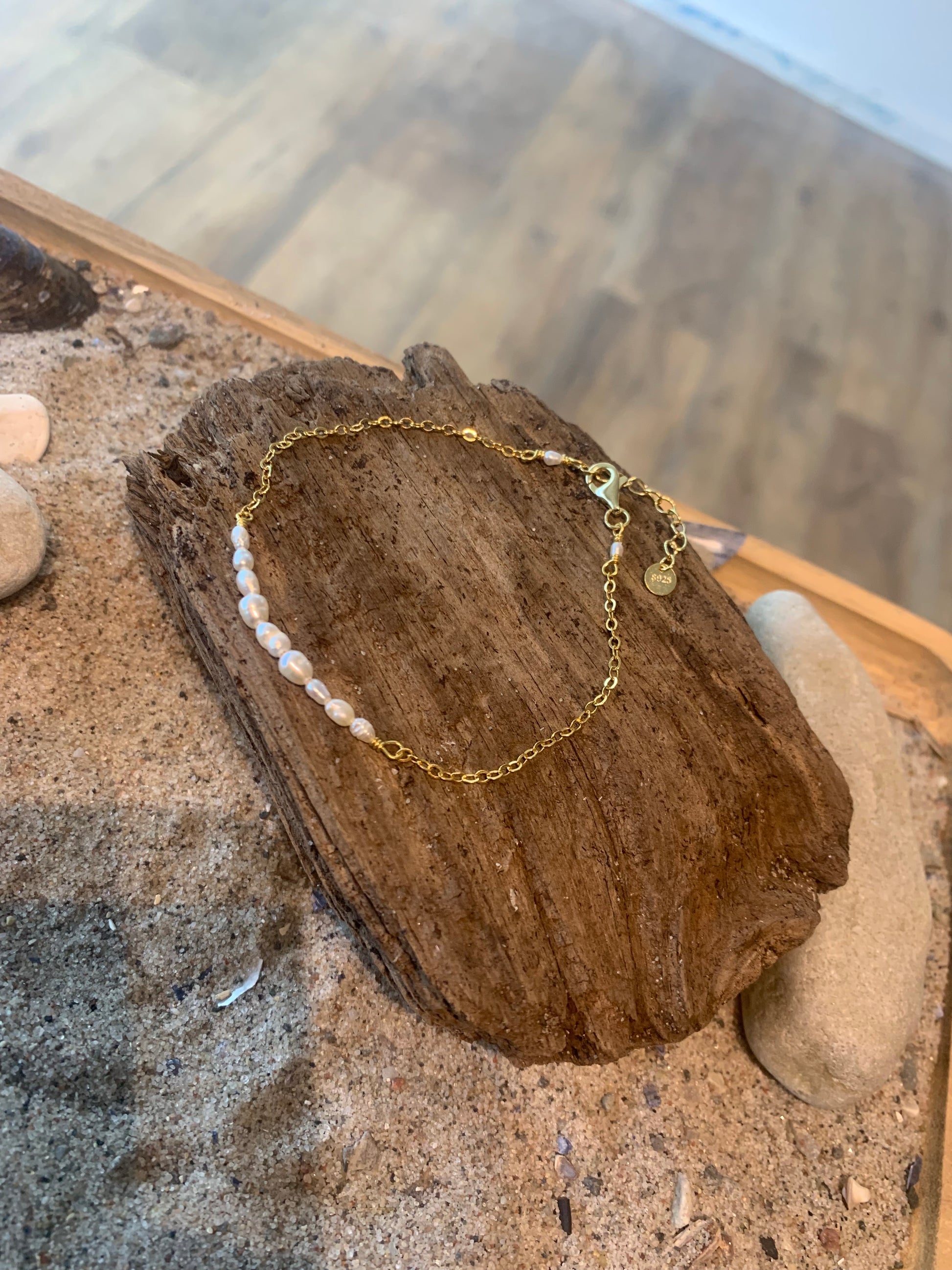 Armbåndet lukkes med karabinlås og har justerbar længde, så det sidder smukt på håndleddet. Et ideelt valg til dig, der elsker håndlavede smykker, ferskvandsperler, forgyldte detaljer og dansk design – eller som en smuk gave med mening.