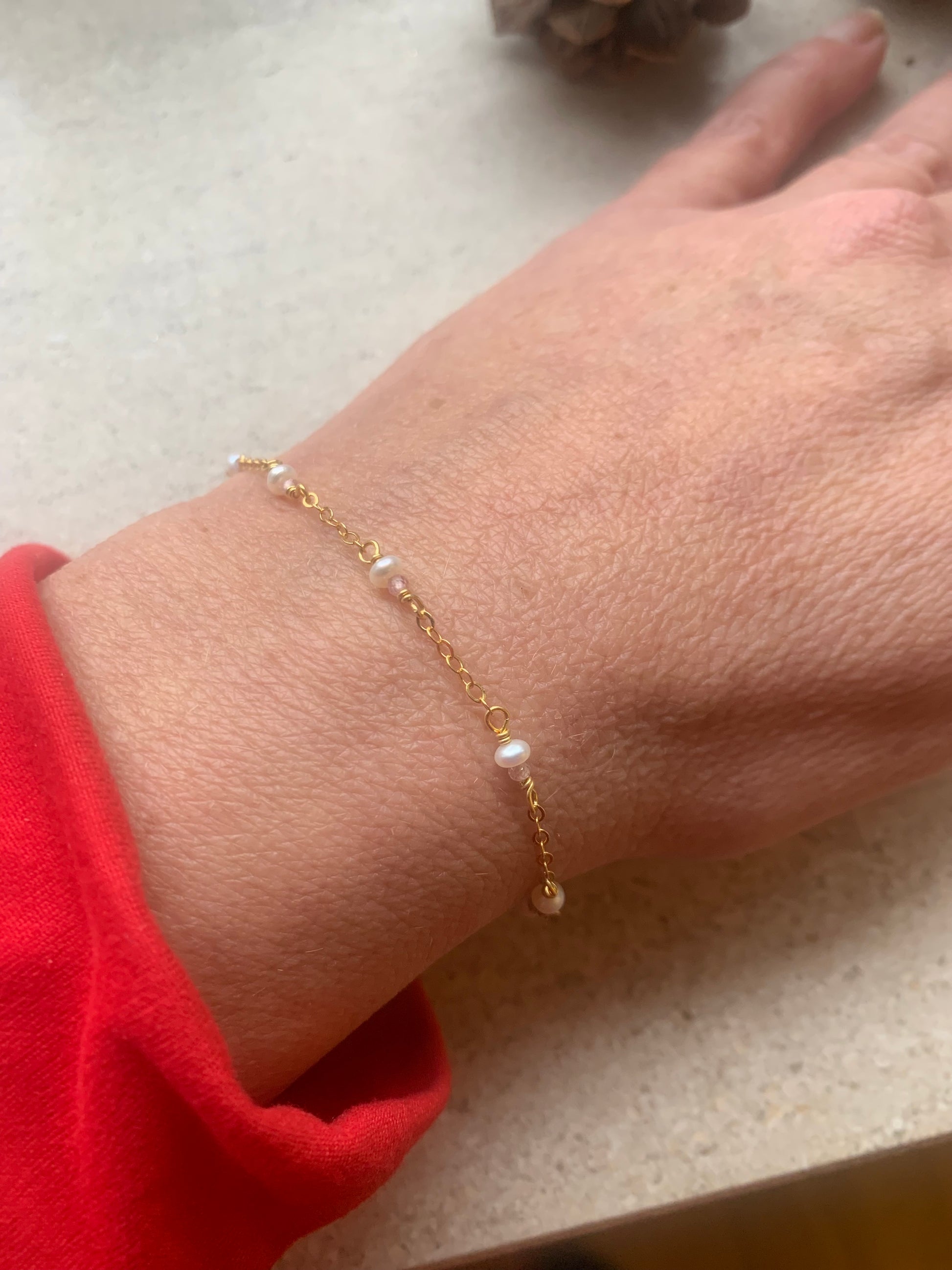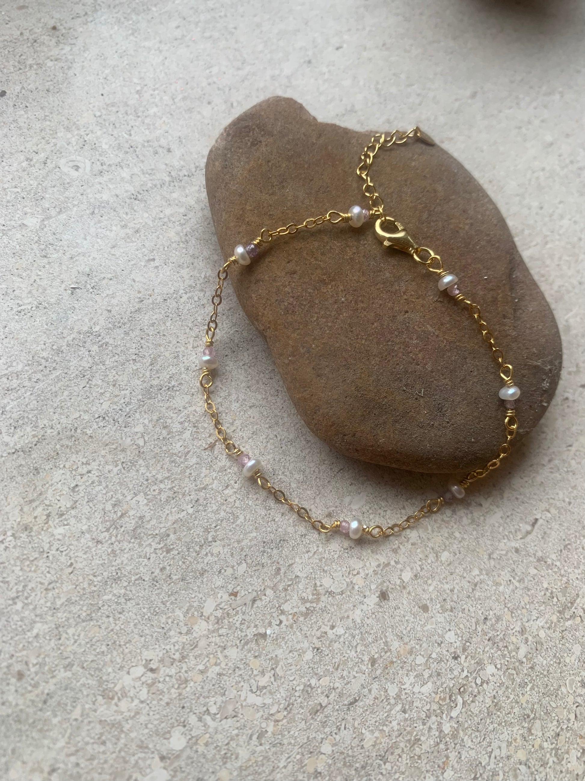 Aurelia – håndlavet perlearmbånd i forgyldt 18 karat sterlingsølv