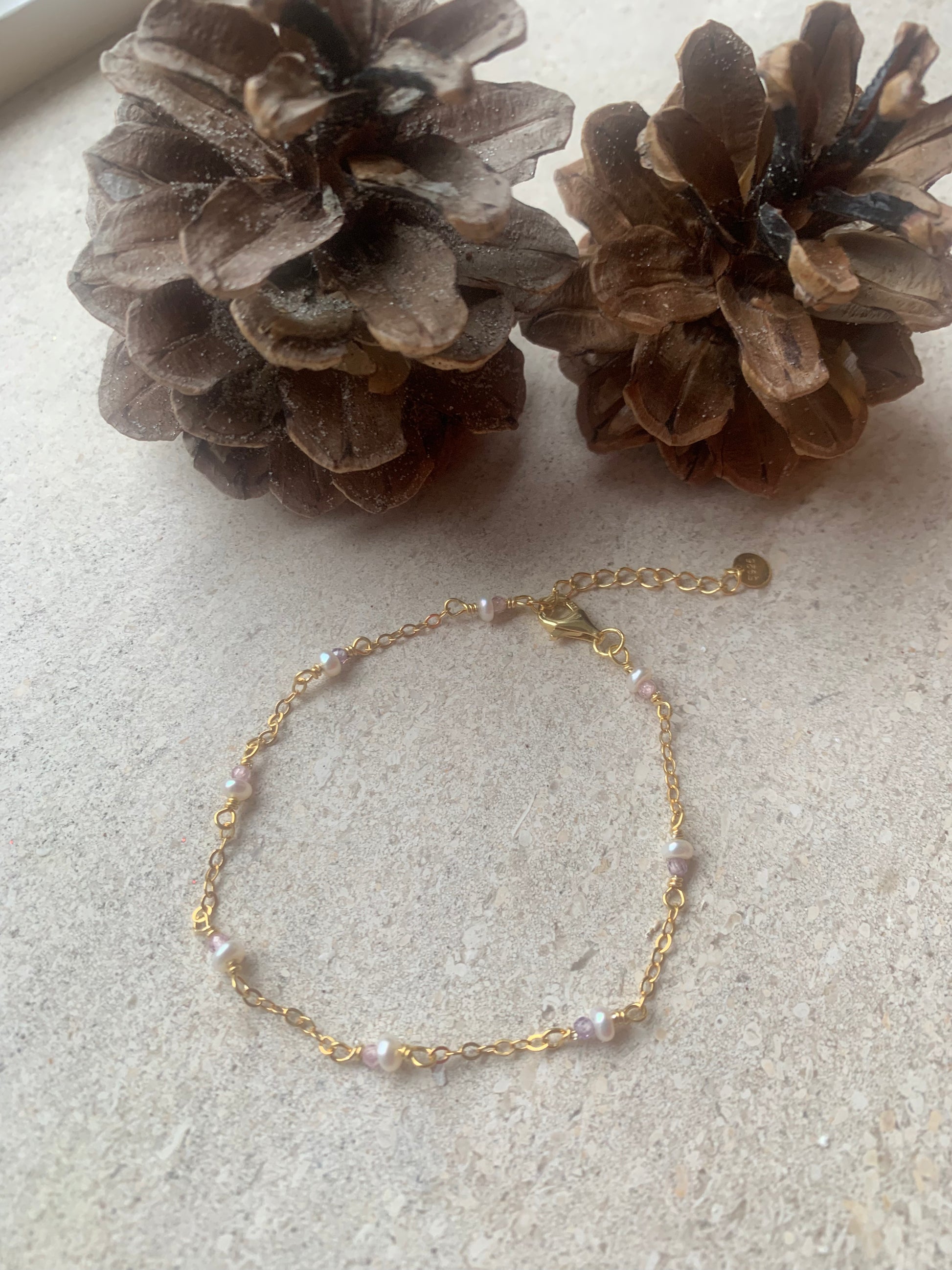 Cubic zirkonia-perlerne tilføjer lige præcis dét ekstra strejf af glamour, uden at armbåndet mister sin naturlige, rolige elegance.
